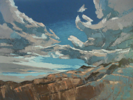 As I paint, I continually ask myself, “What does it need?” Sometimes I ask, “Where is this going?” This is a journey and sometimes it is not clear where the journey ends or how. That is for you, the viewer, to decide. That is why I hesitate to title my work by describing what I see and purposely title my work in a non-descriptive manner. I hope the viewer will bring their own imagination and intuition into play as they experience my work.